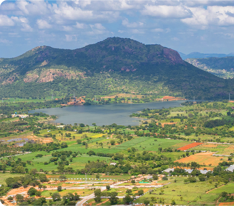 Cradled by nature’s embrace, it balances serenity with access: the tranquil sweep of Gundamagere Lake, the timeless Makalidurga Hills, and the ease of connectivity to Kempegowda International Airport and the rapidly evolving STRR corridor.